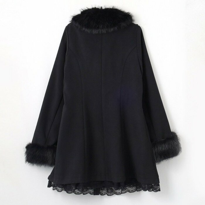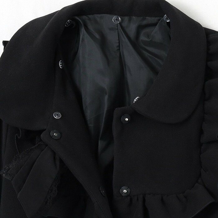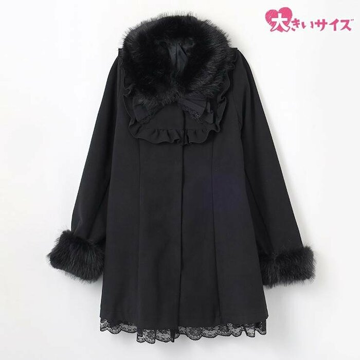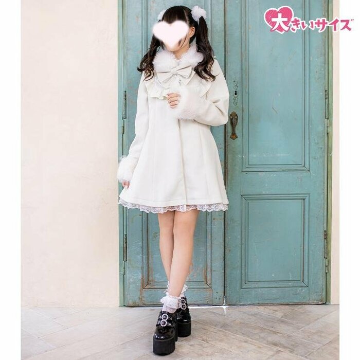 カラーはブラックとホワイトがあります。首回りと手の部分にはファーがついていて高級感があります。大きなリボンが顔周りに華やかさをプラスしてくれそうです。