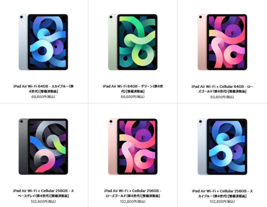 - iPad Air Wi-Fi 64GB - グリーン(第4世代)[整備済製品]6万9800円(税込)