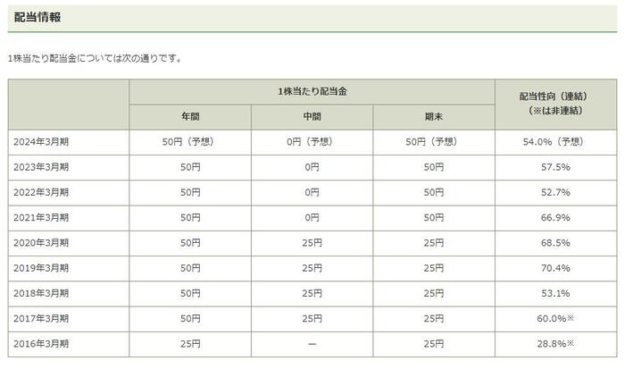 最後にゆうちょ銀行の配当推移を確認しましょう。