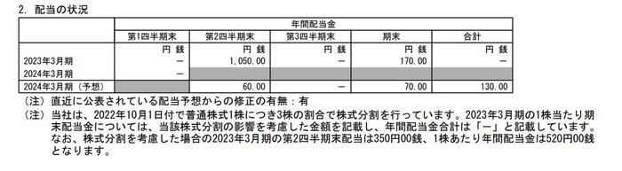 日本郵船の株式を1年前に買い、持ち続けたとすると、「2023年3月期の中間配当」と「2023年3月期の期末配当」の計2回を受け取ることができます。