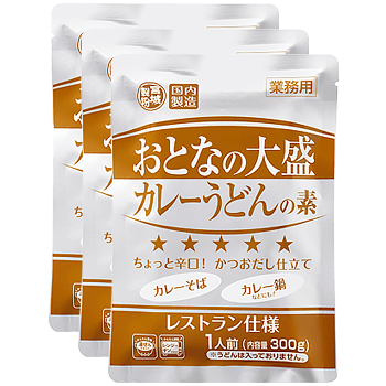 かつお出汁と野菜のうま味が効いた、ピリ辛のカレーうどんの素です。ポイントは、あっという間に完成する調理の手軽さ。湯煎や電子レンジで温めてうどんにかけるだけで、お店仕様の本格的なカレーうどんが簡単に仕上がります。