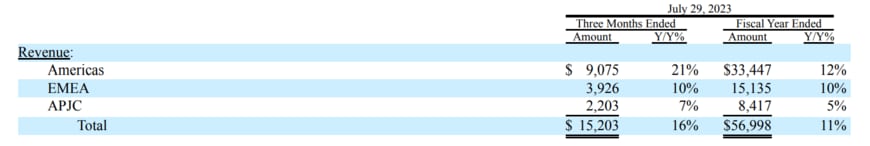 すべてのセグメントで増収となっている。とりわけ「Americas」「EMEA」は、通期および第4四半期のそれぞれで2桁成長を成し遂げている。