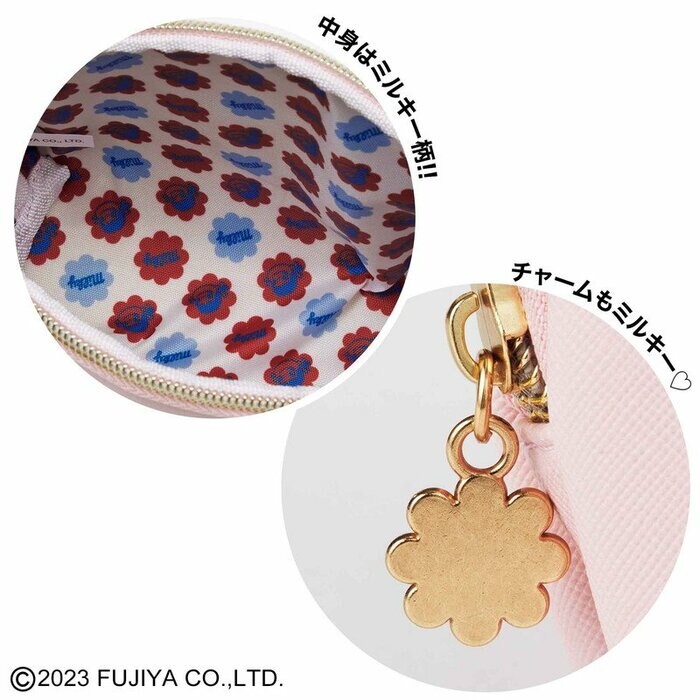 不二家の人気キャラクターであるペコちゃんポコちゃん、そしてMILKFED.との初コラボのスペシャルアイテムです。通常号は女子にとってかかせないコスメポーチ&ミラーがセットに。ポーチの内側はかわいいミルキー柄なのも注目です。バッグの中を華やかに彩る、とっておきのアイテムとして持ち歩いてくださいね。
