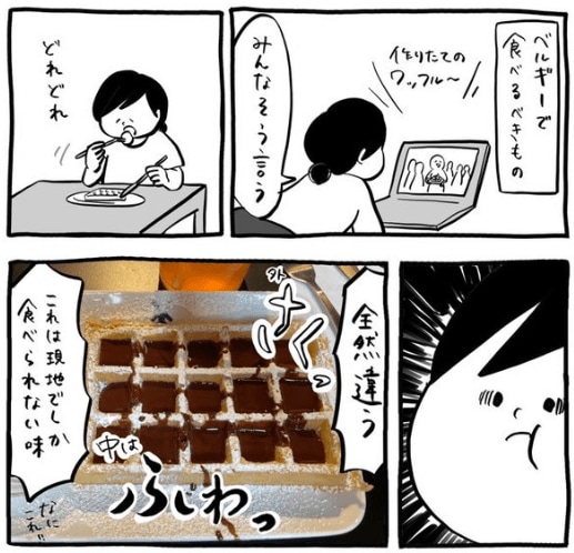「ベルギーでワッフルは食べるべき」というコメントとともに投稿されたのは、1ページの漫画でした。