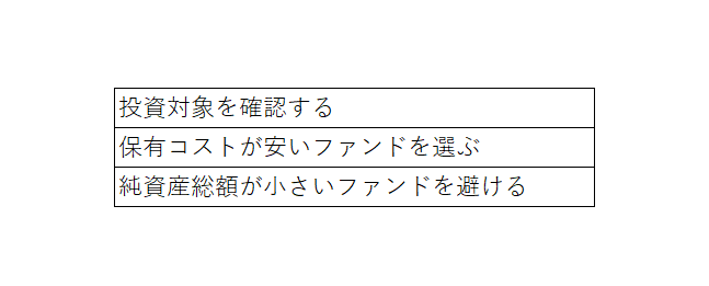 インデックスファンドを選ぶ際は、以下の3つのポイントに注意しましょう。