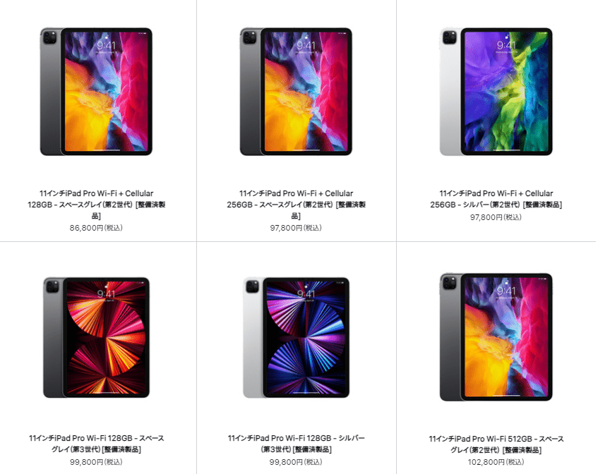 - 11インチiPad Pro Wi-Fi 128GB - シルバー(第3世代)[整備済製品]9万9800円(税込)