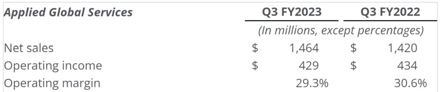 アプライドグローバルサービス(AGS)は、前年同期比で増収だが、収益性の低下が見られた。