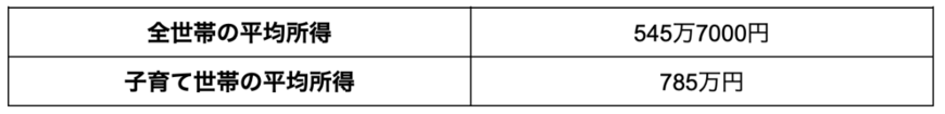 稼働所得の内訳にある「雇用者所得」の平均金額は「689万7000円」となっていることから、子育て世帯の平均的な世帯年収は「600万円台」が多いとうかがえます。