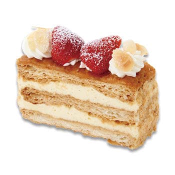 甘酸っぱい苺と、コクたっぷりのクリームが織りなすコラボレーションは至高です。もちろん、ミルフィーユならではのサクッと食感も楽しめますよ。