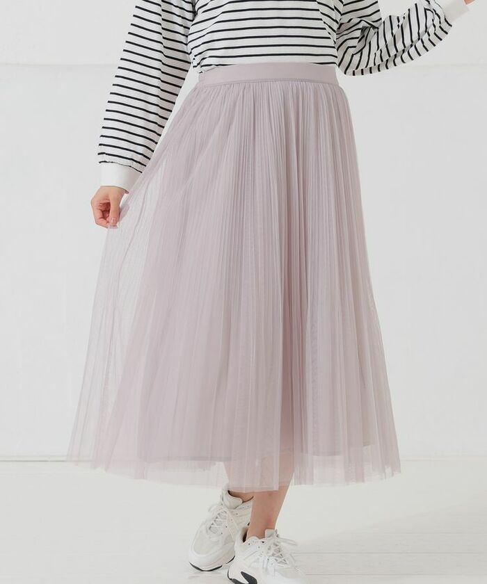 チュール部分はプリーツ仕様となっています。チュールスカートというとボリュームがありすぎて、太って見えてしまうことがあります。