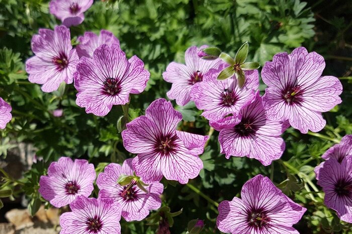 ゲラニウムの仲間であるフウロソウは品種が多い植物。なかでも草丈が低い品種はグランドカバーにおすすめです。