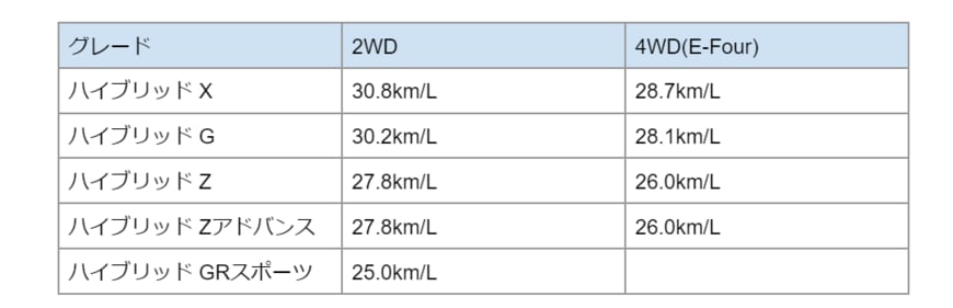 ハイブリッドシステムには1.5リッター直3エンジンにTHS-Ⅱハイブリッドシステムを組み合わせ、クラス世界トップレベルの低燃費となるWLTCモード30.8km/L(ハイブリッドX 2WD)を達成しています。