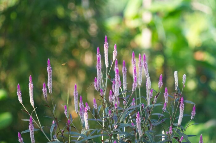 ケイトウの仲間のセロシアは、ロウソクの炎のような花房がユニークな植物です。ピンクやパープルの花色がオシャレで、フサフサした花房が暖かみも感じさせます。