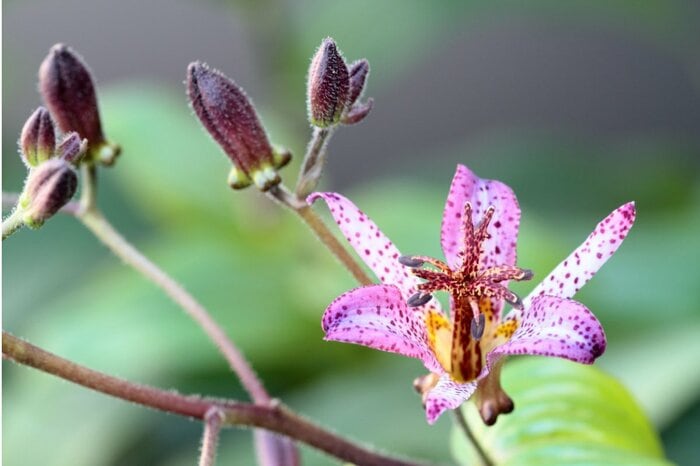 スッと伸びた茎の先に細かな斑点のある花が美しく、気品があります。