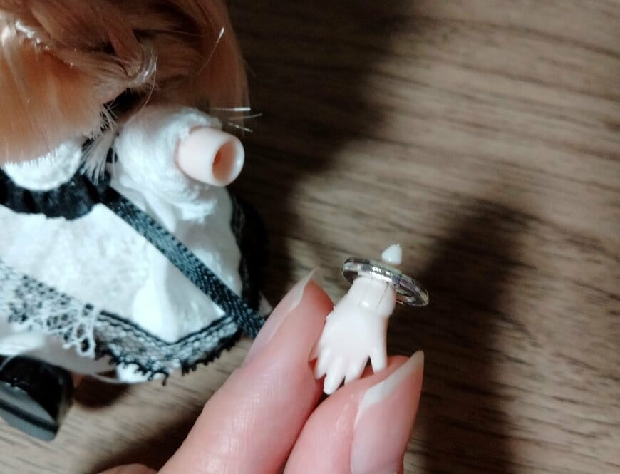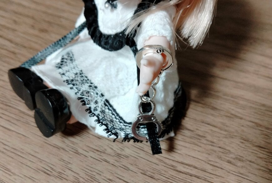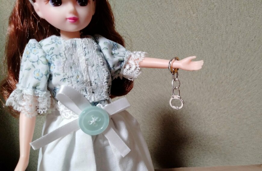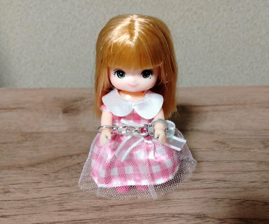 写真のようにリカちゃん人形の腕には通すことができました。同様に、手が小さくて腕が細い人形なら手錠をかけて遊ぶことができるでしょう。