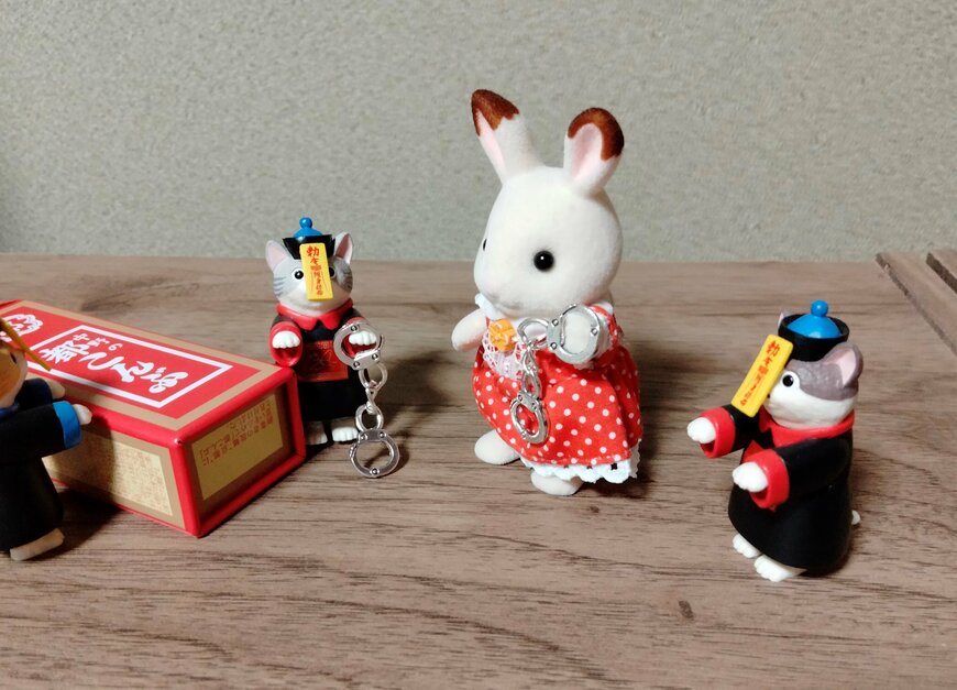 手錠と同じく1/12サイズの人形であるシルバニアファミリーは、一部の人形に手錠を持たせることができました。持たせることができたのは、女の子・男の子サイズの人形です。