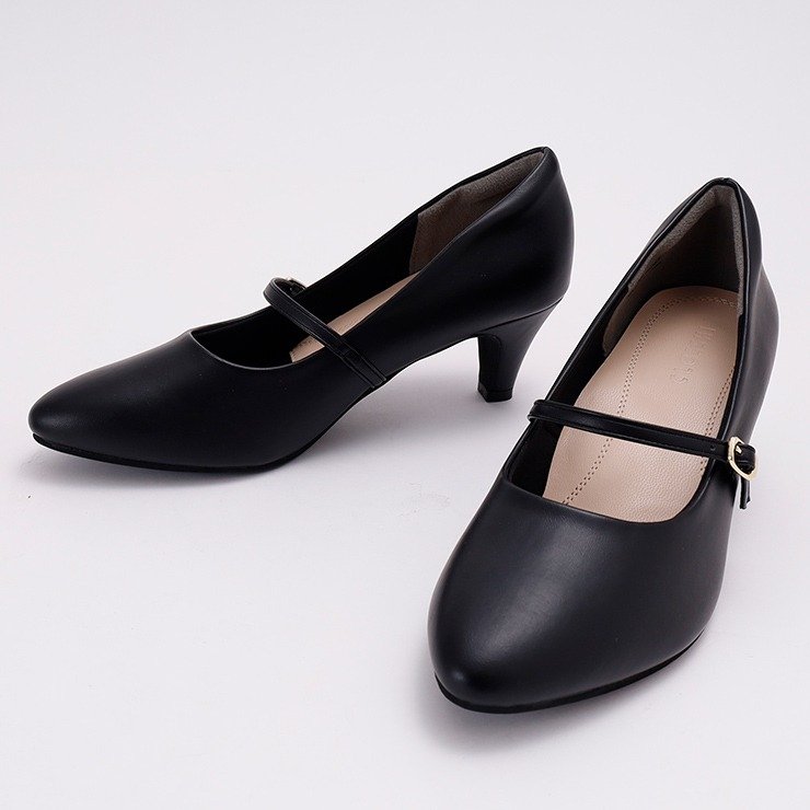 ストラップ付きのパンプスです。ストラップがしっかりと足と靴を密着させてくれるので、脱げにくく歩きやすいです。