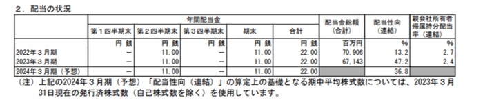 - 2023年3月期・期末配当:11円