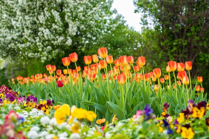ダブルデッカーの寄せ植えにオススメの組み合わせは、パンジー・ビオラとチューリップ。チューリップを中央に配置し、その周りをパンジー・ビオラが囲むように植えると、バランスのよい見た目になります。※チューリップ参考価格:100~400円前後(1球)