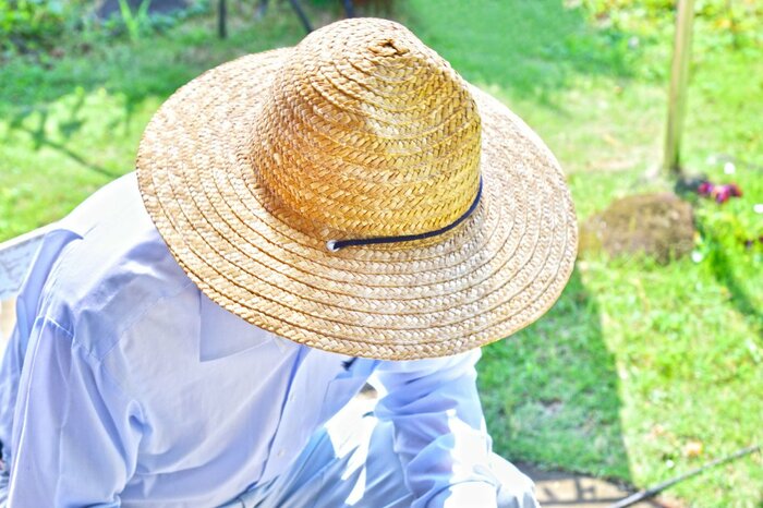 外での作業は黒っぽい色の衣服や帽子より、白っぽい色合いのほうがオススメ。