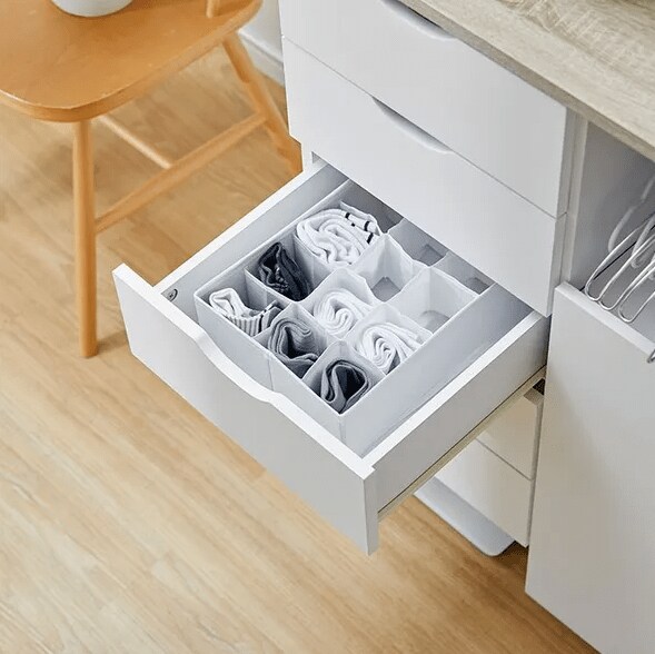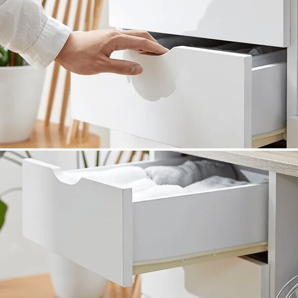 ロータイプのチェストですが、引き出しは5杯に分かれています。そのため、タオルや下着などを分類する、家族ごとに引き出しを分ける、といった使い方ができます。スリット状の取手がついており、見た目はシンプルなのに開閉しやすいのもポイントです。
