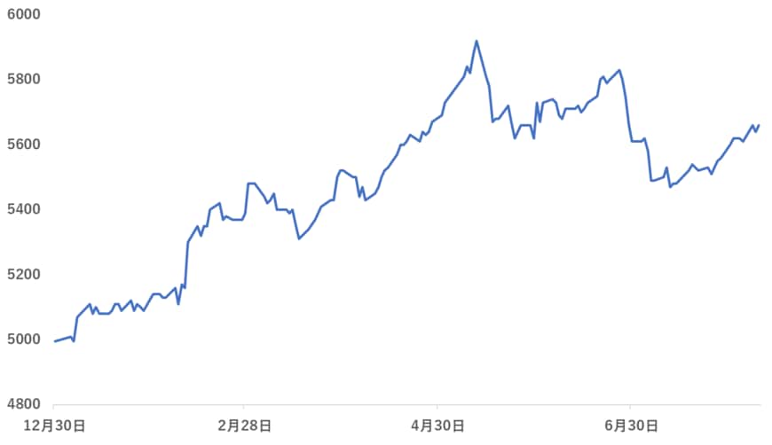 年初からの推移を見ると、前半は好調な業績により上昇が続いていましたが、5月に発表された2023年の第1四半期決算の内容などを受けて株価が下落方向に転じていると考えられます。