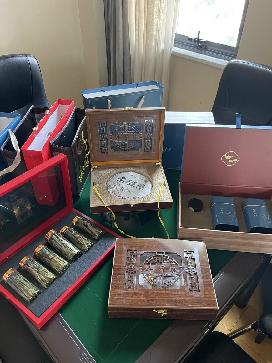 「たった今起こった事をツイートする」というコメントとともに投稿されたのは、4枚の写真でした。そこに映っているのは、見るからに高級そうな中国茶の数々。