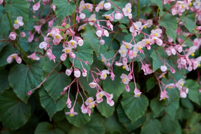 ベゴニアの仲間のシュウカイドウは、半日陰でも育てられる多年草。耐陰性があり、やや湿り気のある場所を好みます。