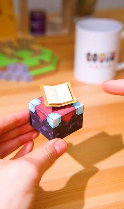 動画におさめられていたのは、紙で再現されたマインクラフトの世界です。動画の冒頭には、ゲーム内に登場する「エンチャントテーブル」というブロックが写っています。