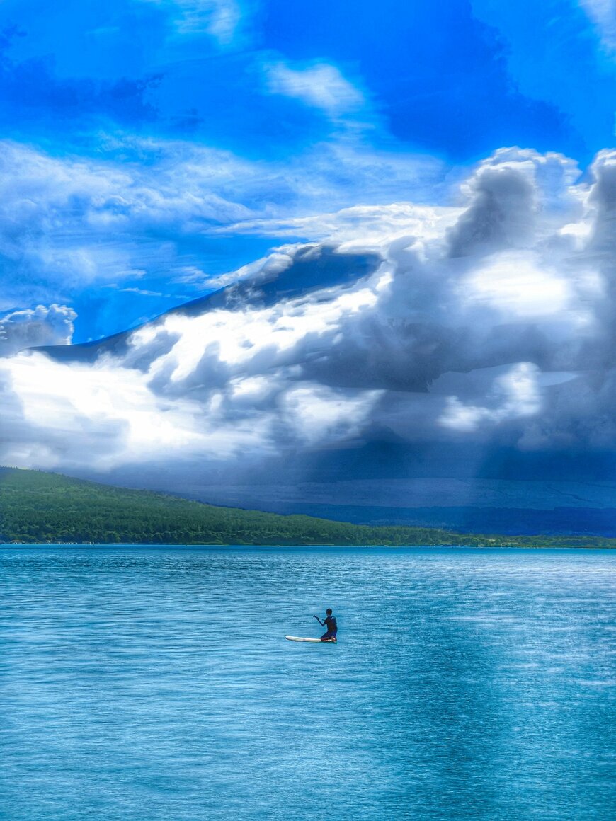 「晴天の山中湖が圧巻の絶景すぎました…」というコメントとともに投稿されたのは、1枚の写真でした。
