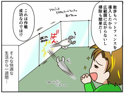 シャワーカーテンに空気清浄機、ペットフェンスと、着々と準備を整えます。その対策は一見成功したかのように見えたのですが…。