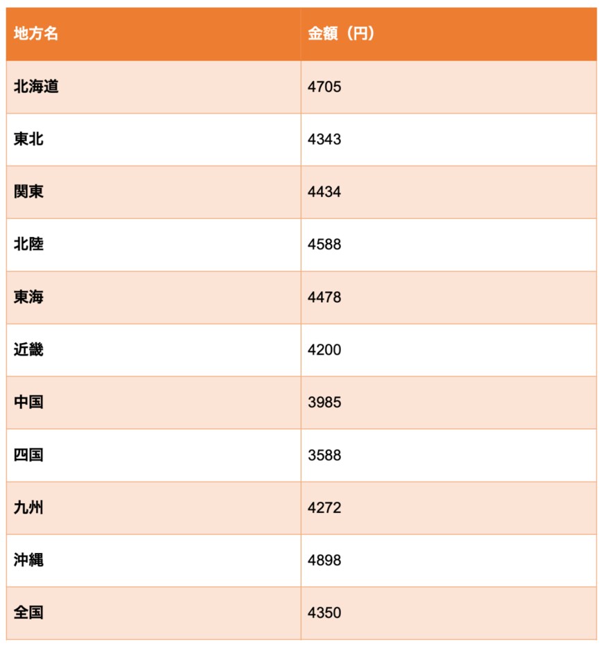 ここでは総務省が実施している家計調査(2022年調査分・二人以上の世帯)の結果から、地方ごとのトイレットペーパーの購入に充てた金額を紹介します【図表2】。