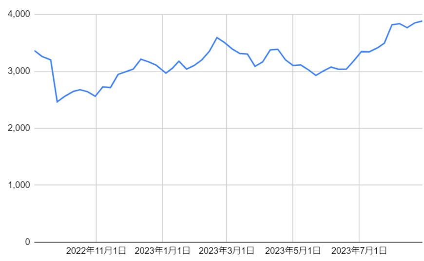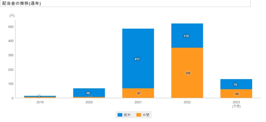 最後に日本郵船の株価と配当金の推移を確認しましょう。