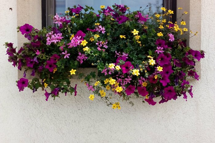 寄せ植えに使う花色の組み合わせは、色彩だけでなく色の濃淡や明暗もポイント。寄せ植えの手前から奥にかけて、なだらかなグラデーションになるように植栽しましょう。