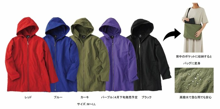 この記事でご紹介する「レディーストランスフォームジャケットマウンテンパーカー」も、レッドといったカラーがおしゃれなだけでなく、裏返すとバッグに変身する便利機能がついています。