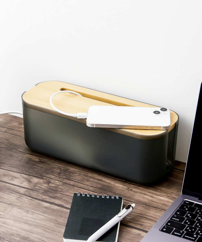 ホコリがたまることを避けたいスマートフォンやタブレットなどのケーブルをスマートに保管するためのボックスです。ピンクとグレーの展開で、部屋の雰囲気に合わせて色が選べます。