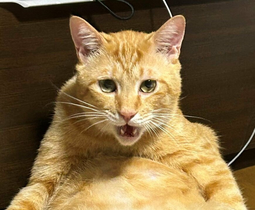 可愛らしい黄金色の瞳をこちらに向けており、さらに口は半開きの状態です。まさに「ビールと枝豆持ってきて~!!」なんてセリフが聞こえてきそうな光景にホッコリしますね。