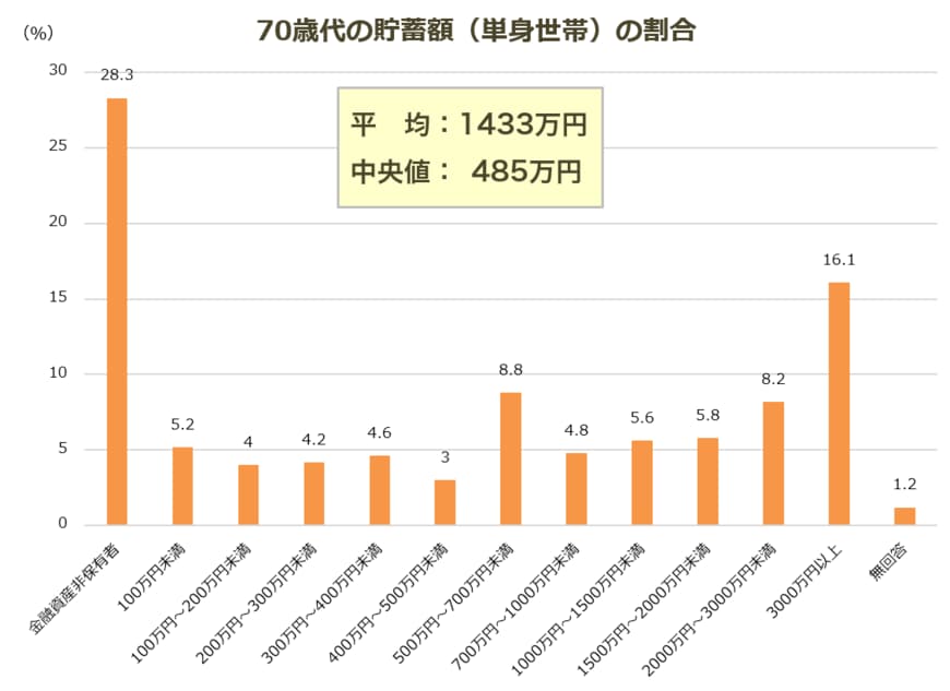 1. 70歳代「おひとりさま」の貯蓄額。平均と中央値はいくらか