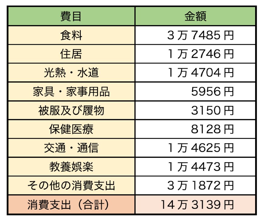 65歳以上の単身無職世帯の1ヵ月の消費支出は14万3139円です。