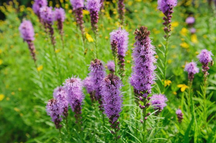 リアトリスは穂状に咲く花がブラシのようにも見えるユニークな多年草。背丈も高く、ナチュラルな草姿が魅力です。日照時間が足りないと花付きが悪くなるので、日なたで育てましょう。※参考価格:400~600円前後(3号ポット苗)