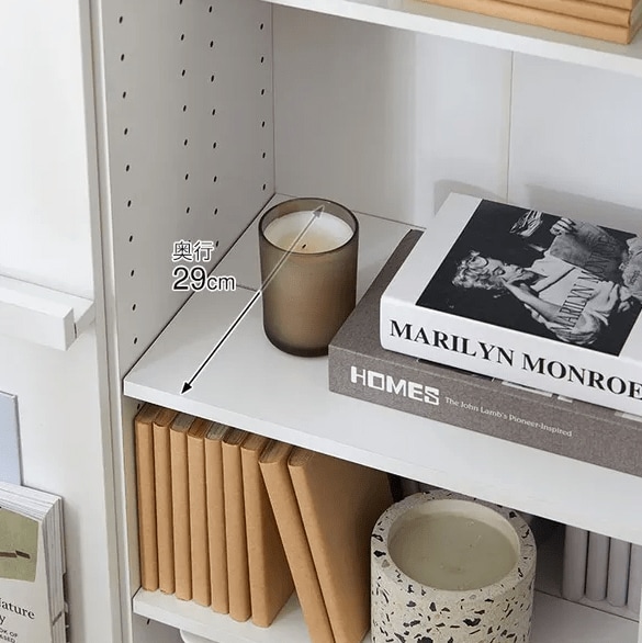 本棚は本のサイズによってはスペースを持て余すことがありますが、LOWYAの大容量本棚は前後で分離した仕切りを採用することで、この問題を解決。奥行29cmと奥行15cmを使い分けることができるので、収納する本を隙間なく収納することができます。