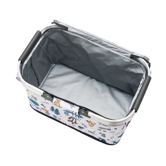 コンパクトに折りたため、収納、携帯に便利なアルミハンドル保温保冷バスケットです。容量約30Lのたっぷり仕様。中の温度を逃しにくく開閉しやすいWファスナー付き。家族みんなで楽しめる、ピクニックやキャンプなど、アウトドアレジャーにもおすすめですね。また、災害時にも便利に使えます。