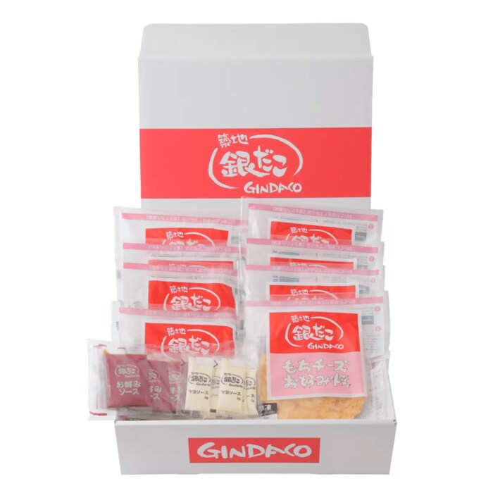 - 【内容量】築地銀だこもちチーズお好み焼 200g×8枚、築地銀だこお好みソース 20g×8袋、築地銀だこマヨソース 8g×8袋