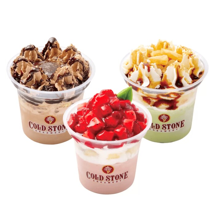 コールドストーンの人気商品がカップになったパフェアイス。店舗で人気のストロベリーピンキーケーキ、フォーリンチョコレート、わらびもち和・ラ・モードの3つのフレーバーを自宅で手軽に楽しめます。