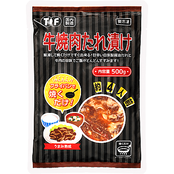 商品を解凍してフライパンで焼くだけで、あっという間にできあがる「牛焼肉たれ漬け」です。