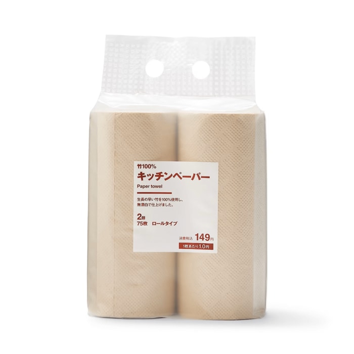 竹100%キッチンペーパー 2個 75枚 ロールタイプ 149円