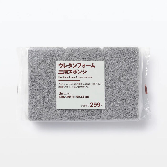 ウレタンフォーム三層スポンジ/グレー 3個入 299円