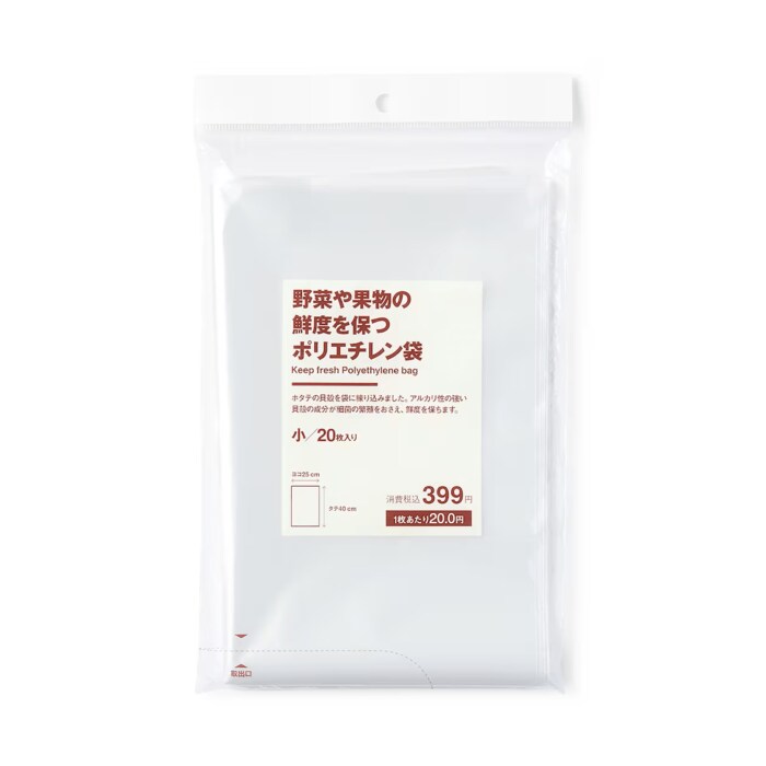 野菜や果物の鮮度を保つポリエチレン袋 小20枚入り 399円