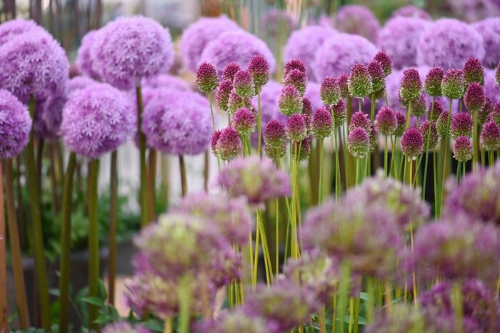 丸い球形の花が愛らしいアリウム。切り花にもおすすめの多年草です。球形の花形以外にも、半球状に花を咲かせる品種もあります。