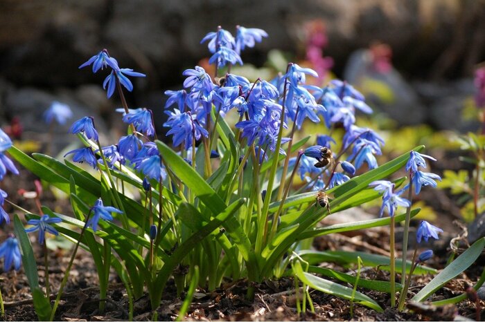 シラーは大変種類が多い球根植物です。ブルーやパープル、ホワイト、ピンクの花を咲かせますが、特に花がベル型の品種は鈴なりに咲く花姿が豪華です。